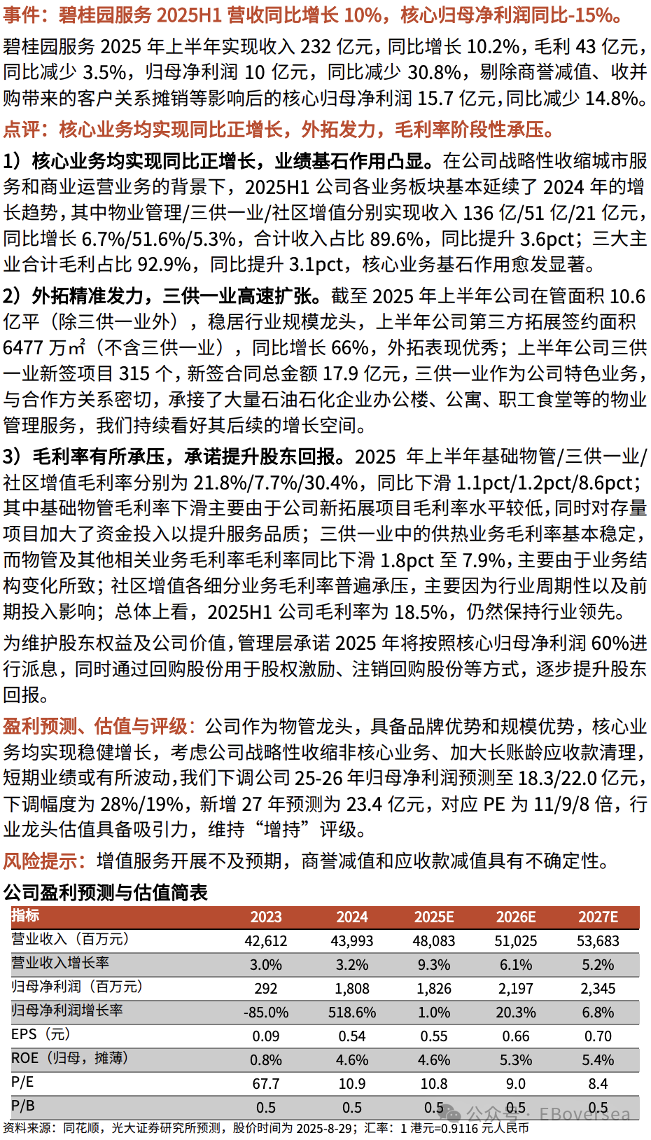 报告标题:《核心业务同比正增长,承诺提升股东回报——碧桂园服务(6098.HK)2025 年中期业绩点评》